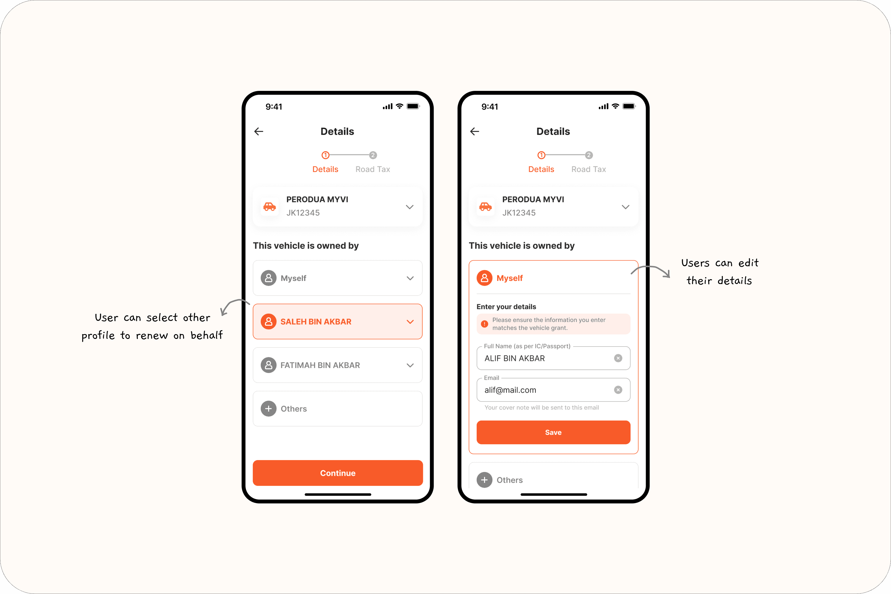 Designed a selection mechanism so users could specify who owns the vehicle (themselves or others)
