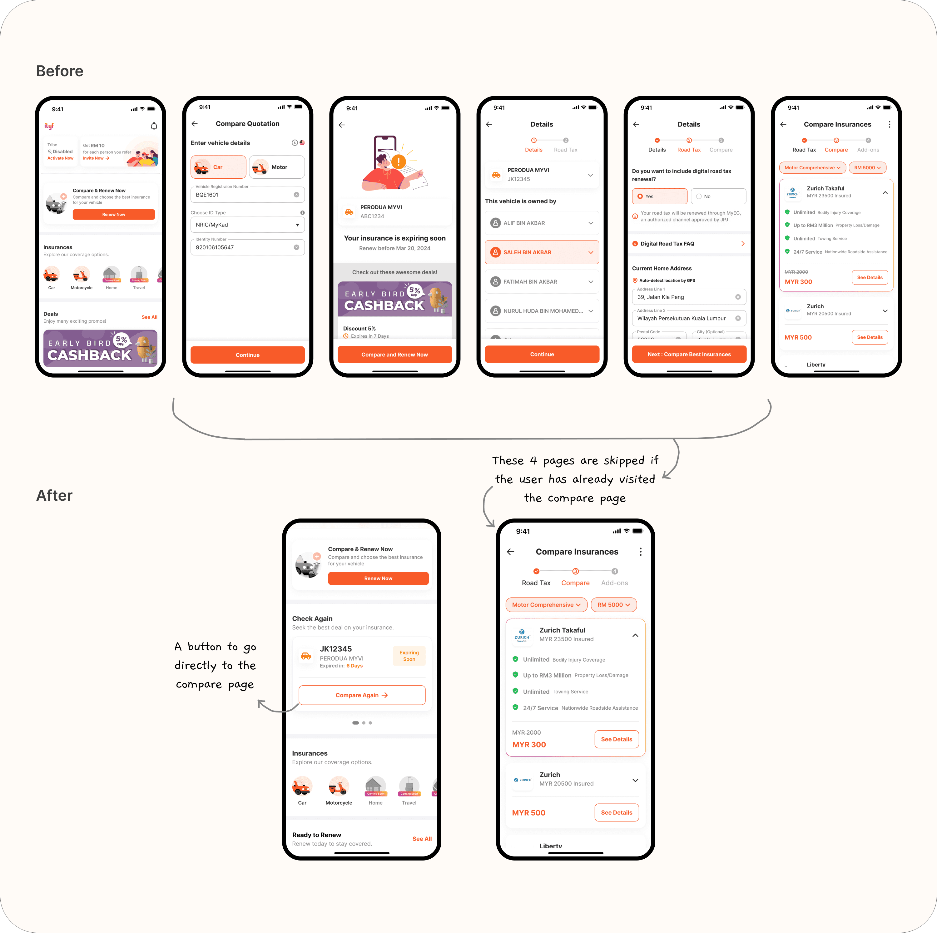 Streamlined renewal flow from 6 to 2 screens, significantly reducing friction to reach the compare page